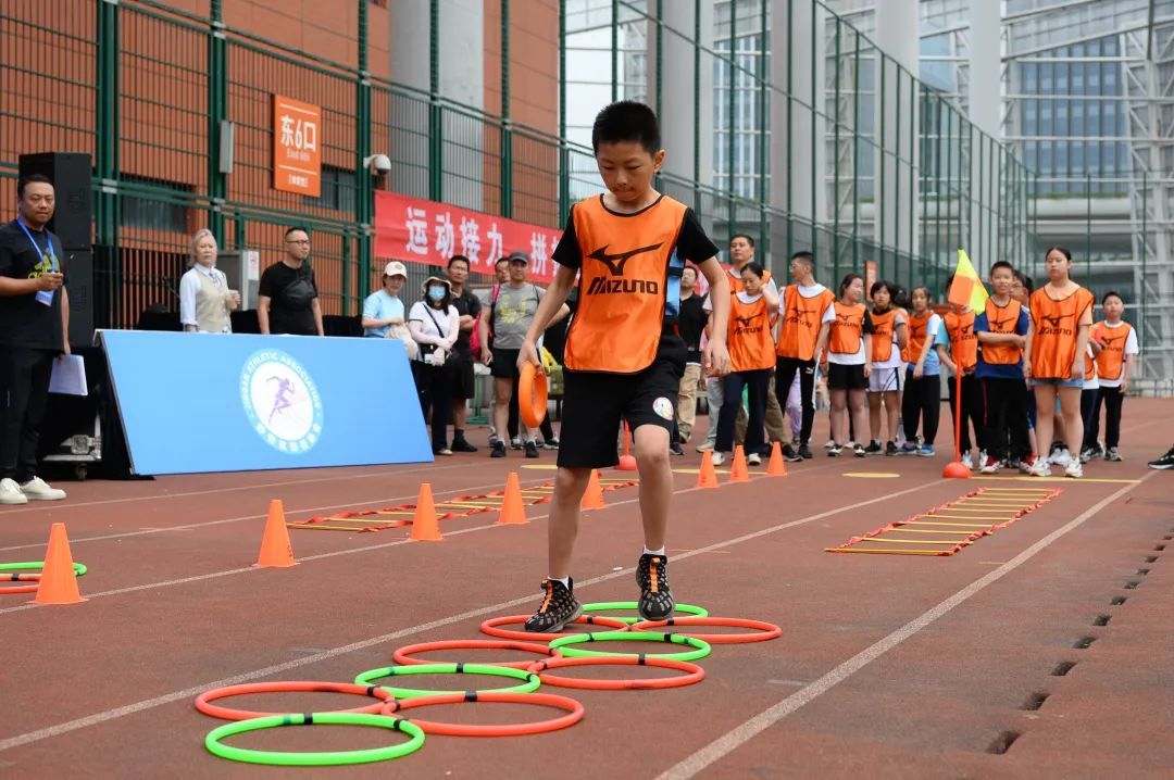 当天的赛事项目设置既能体现孩子们的身体素质又兼顾趣味性,包括:梯子上的赛跑、旋转投靶、投掷标枪、立定多级跳、投球掷准、撑杆跳远、后抛实心球、亲子耐力接力跑、折返方程式接力等,参赛队根据先后次序逐一进行比赛。