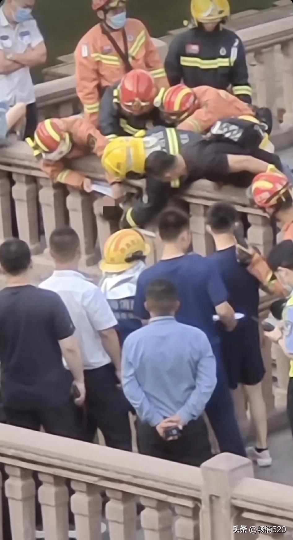 6月4日傍晚五点半左右,一名小男孩在家长陪同下前往豫园游玩。因为贪玩,小男孩的头不慎卡在了九曲桥上的石柱栏杆内。小男孩的家长立刻拨打了110和119求助民警和消防队员。经过20分钟全力施救,小男孩被顺利救出。