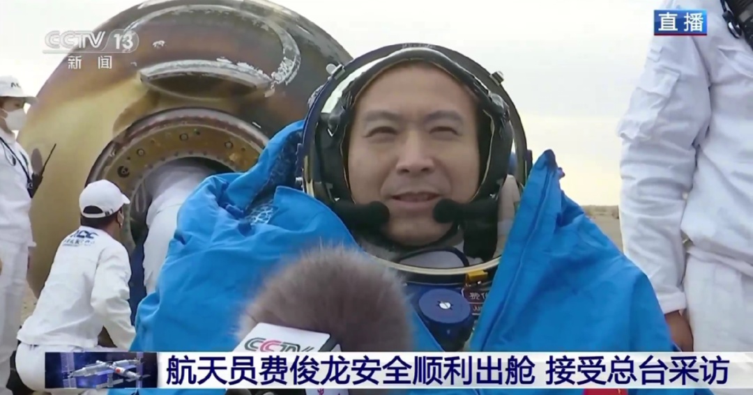 费俊龙说,首先向祖国人民报告,我们神舟十五号乘组完成了在轨所有工作和任务,现在顺利回到了祖国,我们感觉良好。