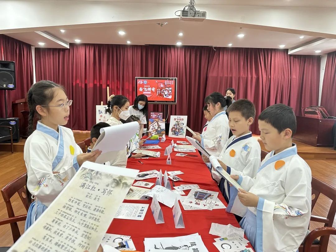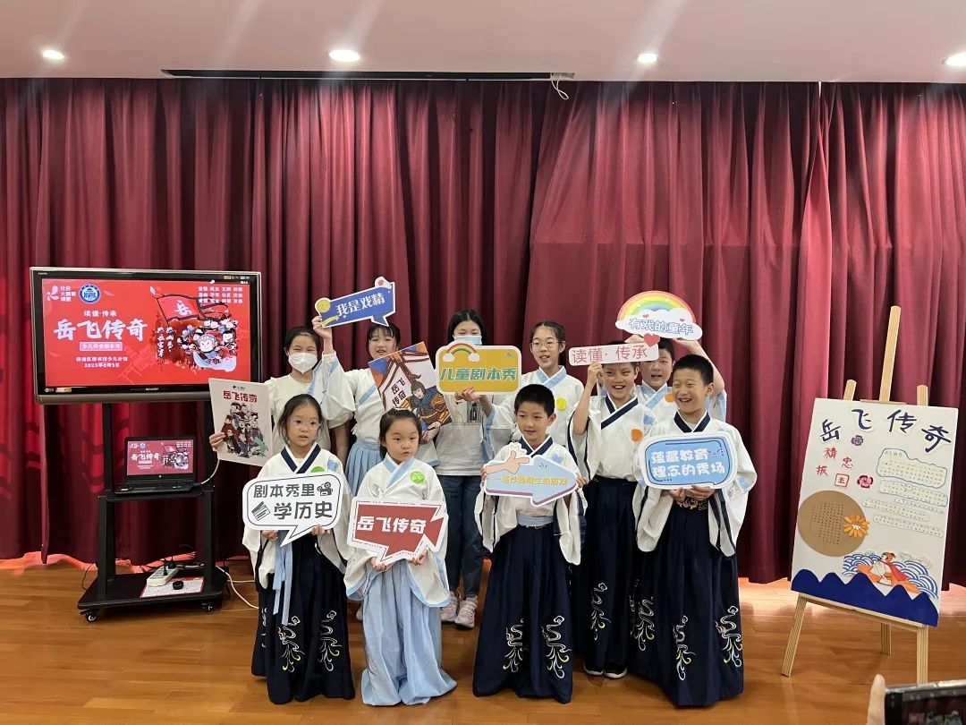6月3日,在杨浦区图书馆少儿分馆的《岳飞传奇》少儿历史剧本秀活动中,孩子们穿上古装,甩起长袖,化身梁红玉、韩世忠、李彦仙等历史人物,演绎起南宋抗金名将岳飞的故事。