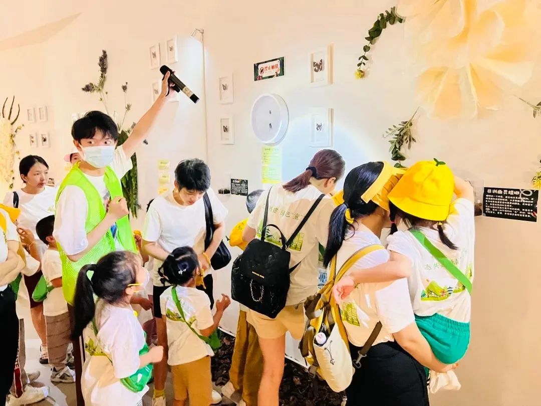 活动中,小朋友们探索了昆虫艺术馆,近距离观察了蜥蜴、蚕宝宝、角蛙等自然界中的小精灵,欣赏形态各异的蝴蝶标本,了解各种动物的特点。