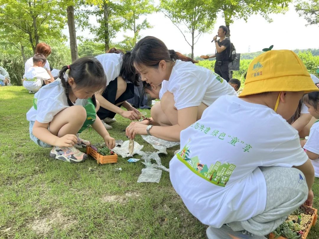 小朋友们在户外感受松江的生态之美,现场学习利用生活中各种废弃材料种植盆栽,例如可回收物的塑料和玻璃瓶可以当成种植材料;利用煤渣,混在土里可以增加土壤的透气性,改善土壤结构等。装饰花盆、填土、种植……小朋友们还拿起工具“种植”多肉植物,伴着欢声笑语,一盆盆多肉微景观便完成了。