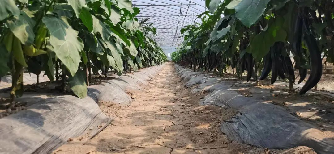 在茄子新品种展示大棚内,长势茂盛的茄子秧下面,缀满一个个长条形的紫黑色的诱人茄果,其中包括了市农科院培育的龙一,以及优质的沪茄316等品种。