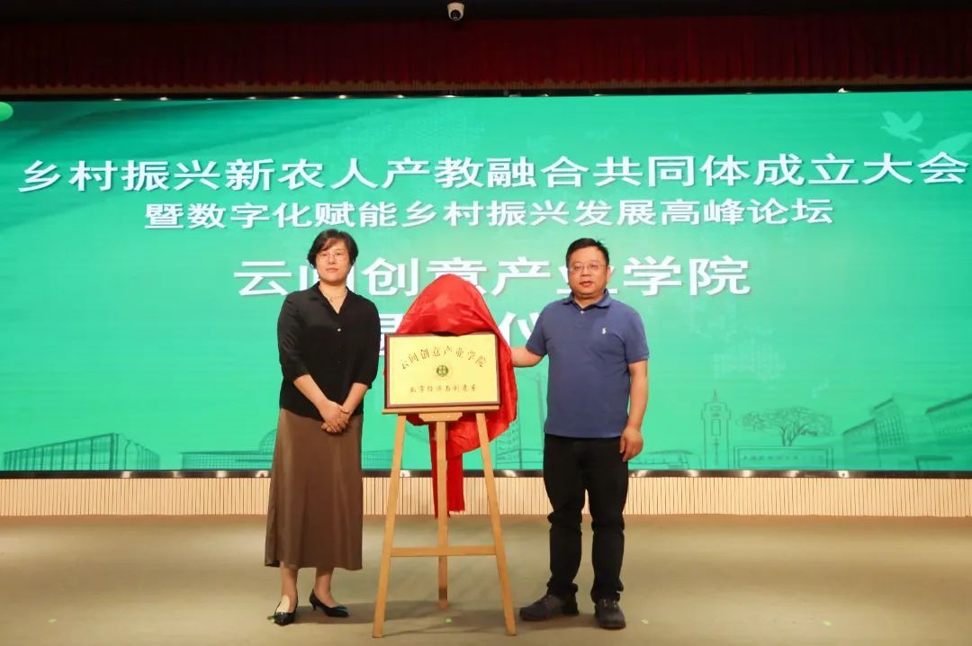会上,乡村振兴新农人产教融合共同体揭幕,并为共同体成员单位授牌。会上还同步成立了云间创意产业学院,力求通过文化创意元素的介入,挖掘乡村多元价值,激发乡村发展内生动力。
