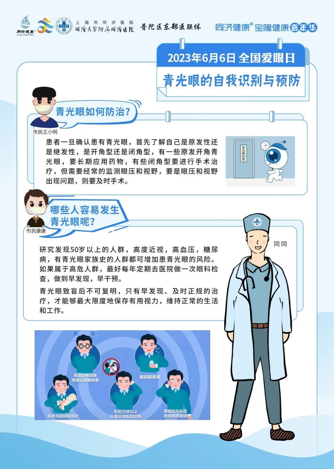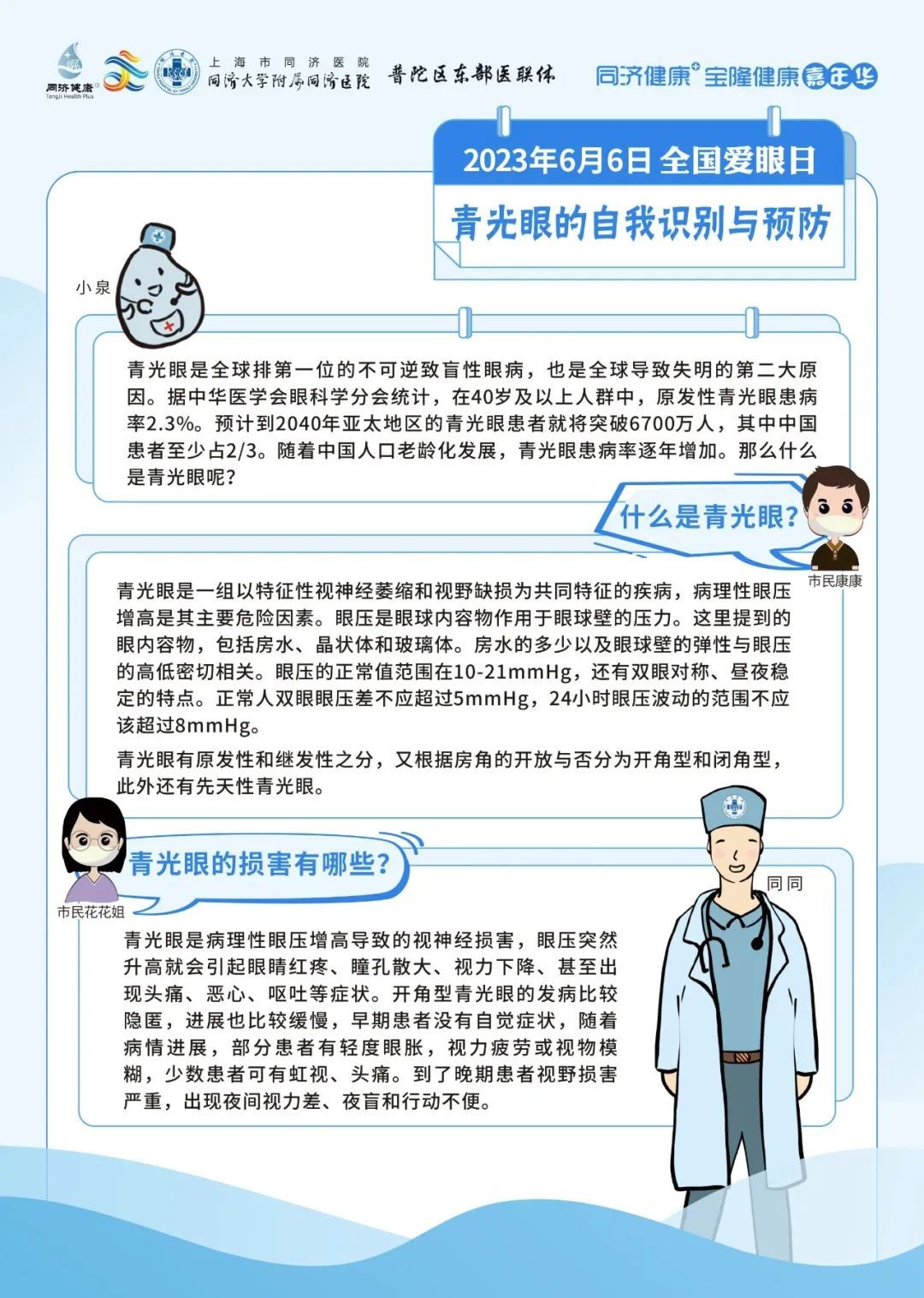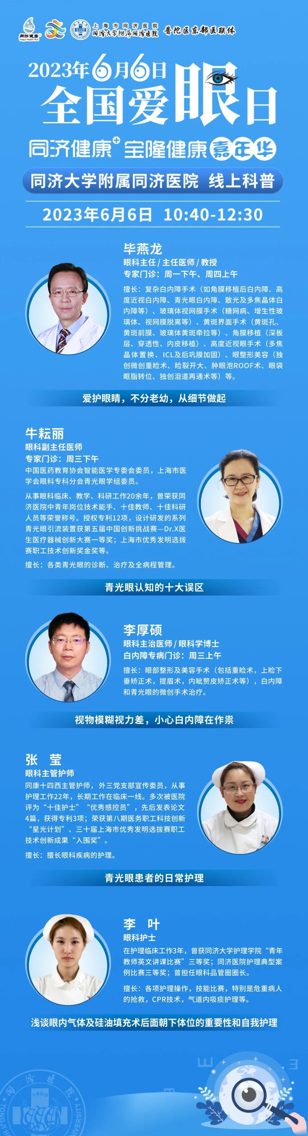 同济大学附属同济医院将于6月6日上午10:40-12:30,由眼科为大家带来爱护眼睛、防治眼病的健康科普知识讲座。