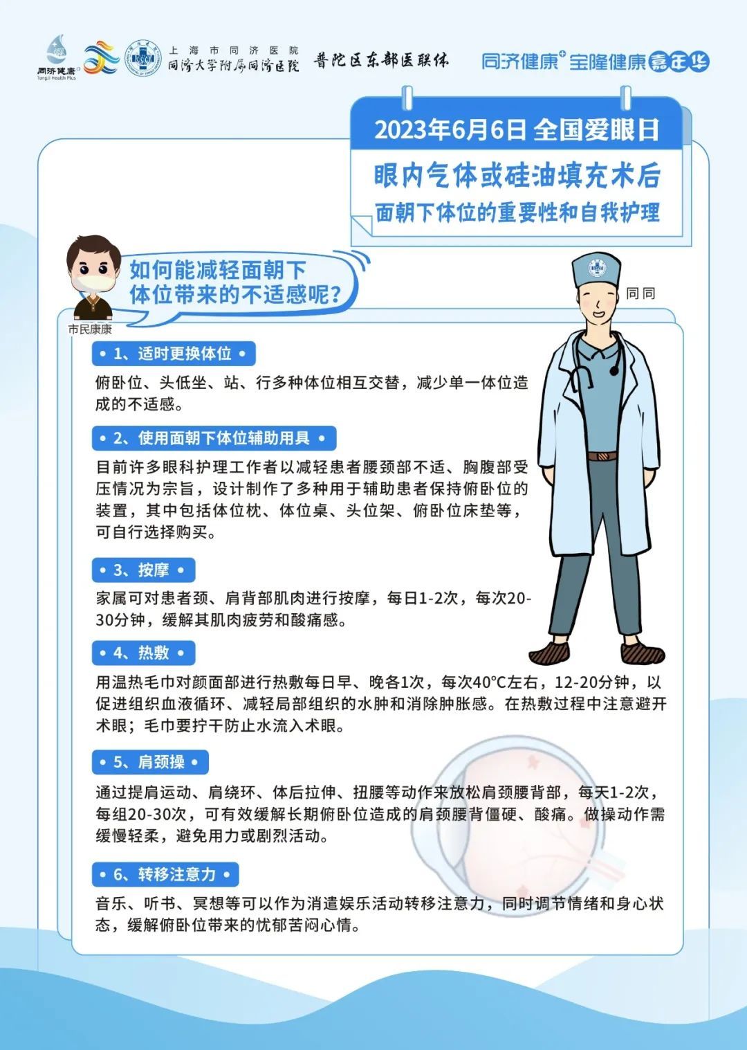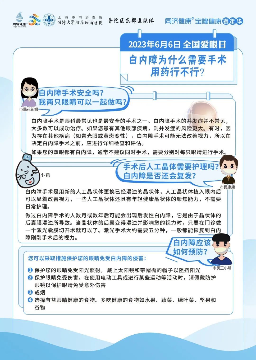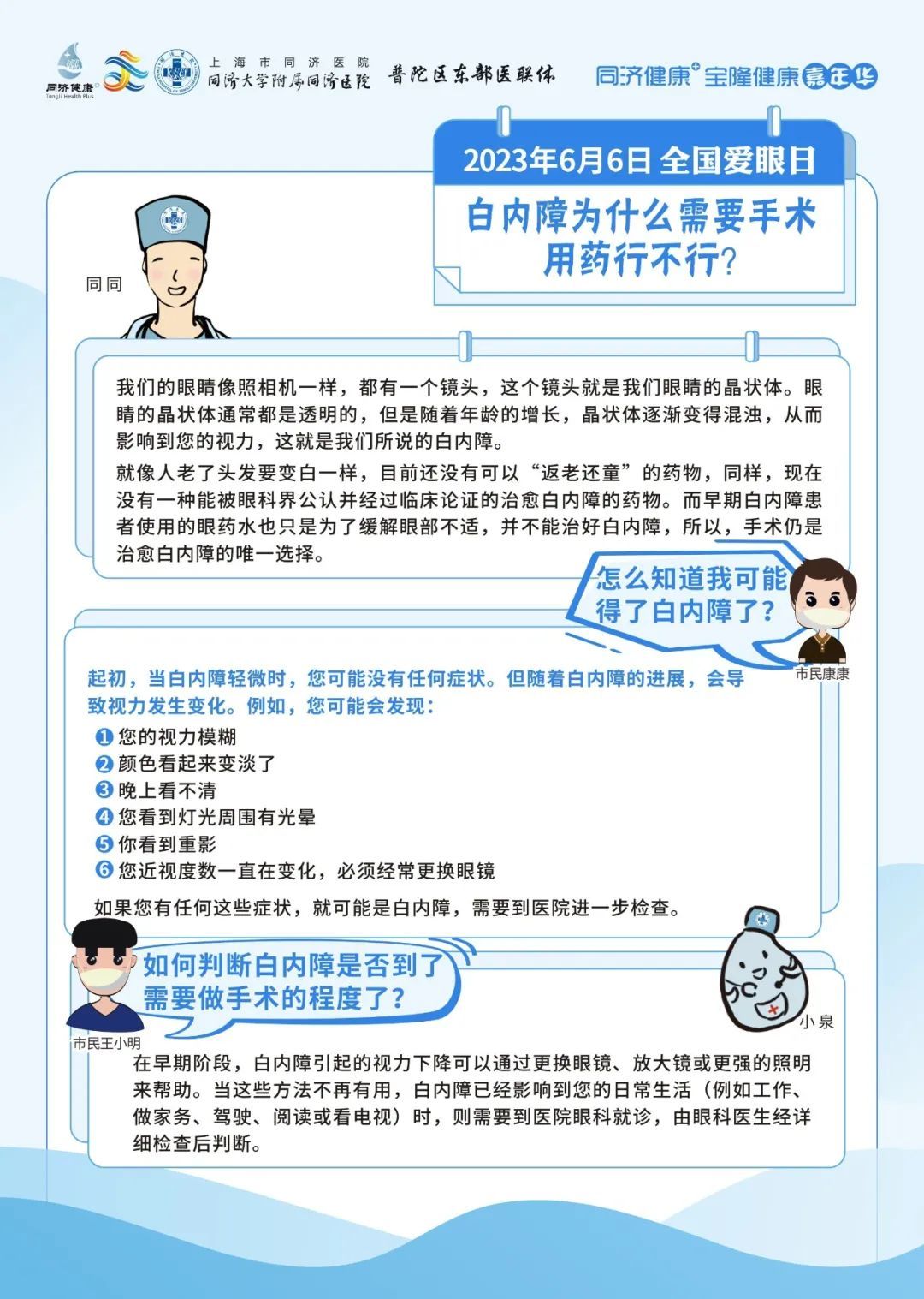 同济大学附属同济医院将于6月6日上午10:40-12:30,由眼科为大家带来爱护眼睛、防治眼病的健康科普知识讲座。