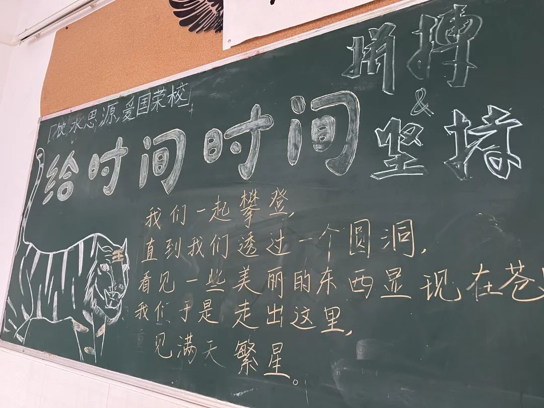 高三三班的姚昊辰同学在备考之余,还创建了自己的抖音号,记录下自己和同学们在校园中幸福快乐的点滴,“伙伴们把心态调整好,如果大家有什么烦恼,就来看看我们的视频,一起微笑面对大考!”更有学子许下了“考后之约”:“愿大家发挥出最佳水平,考完后我在篮球场等你们!”而学生们也在最后一期高中黑板报上写下了自己最深刻的感触——“坎坷之路,终抵星空”“给时间时间”……