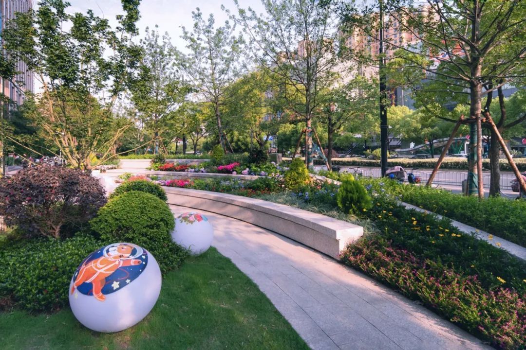 如今,位于长宁路沿线的荟水天中、乐享花园、镜花园等口袋公园以及镶嵌在苏州河畔的街区艺术装置,共同绘就了“一河十景”苏河靓丽风景线,成为街道的“精美项链”和“靓丽名片”,让“苏河周桥”的“15分钟社区美好生活圈”更加丰富多彩。