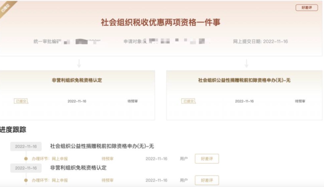 现在通过“一网通办”和电子税务局都能办理“非营利组织免税资格认定”。但提交申请时,系统会自动校验是否存在在办业务。若存在,是无法通过任一平台重复提交申请的。您可以在电子税务局关注当前“非营利组织免税资格认定”办理进度。待完成后,再在“一网通办”提交“公益性捐赠税前扣除资格认定”申请。