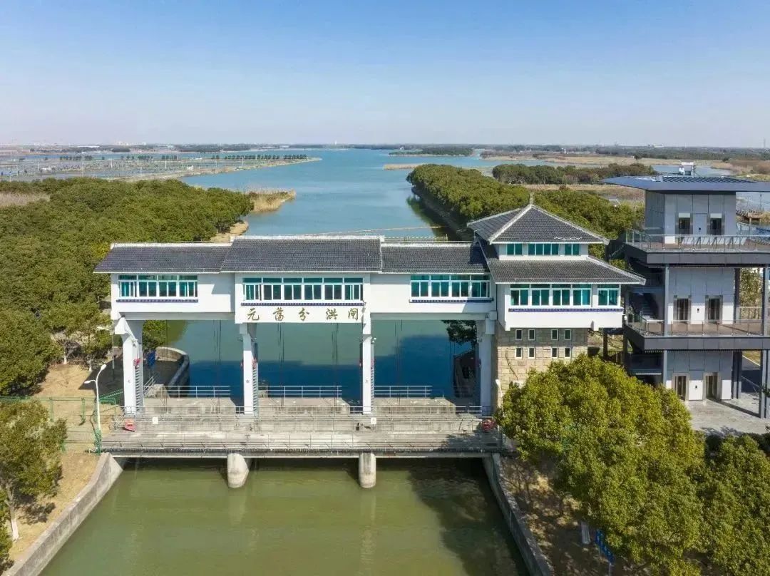 元荡分洪闸(亦称元荡节制闸)位于长三角一体化示范区青浦区金泽镇境内,318国道苏沪交界处的上海侧,北临雪落漾,南临太浦河,工程在太湖流域综合治理十大骨干工程之一的“扩大拦路港、疏浚泖河、斜塘工程”(以下简称扩大拦路港工程)中实施。元荡分洪闸工程为单向节制闸,工程等别为Ⅱ等,水闸主要建筑物为2级建筑物,最大设计流量为121立方米/秒,设防标准为五十年一遇,具有防洪、排涝、水资源调度、冲淤等功能。