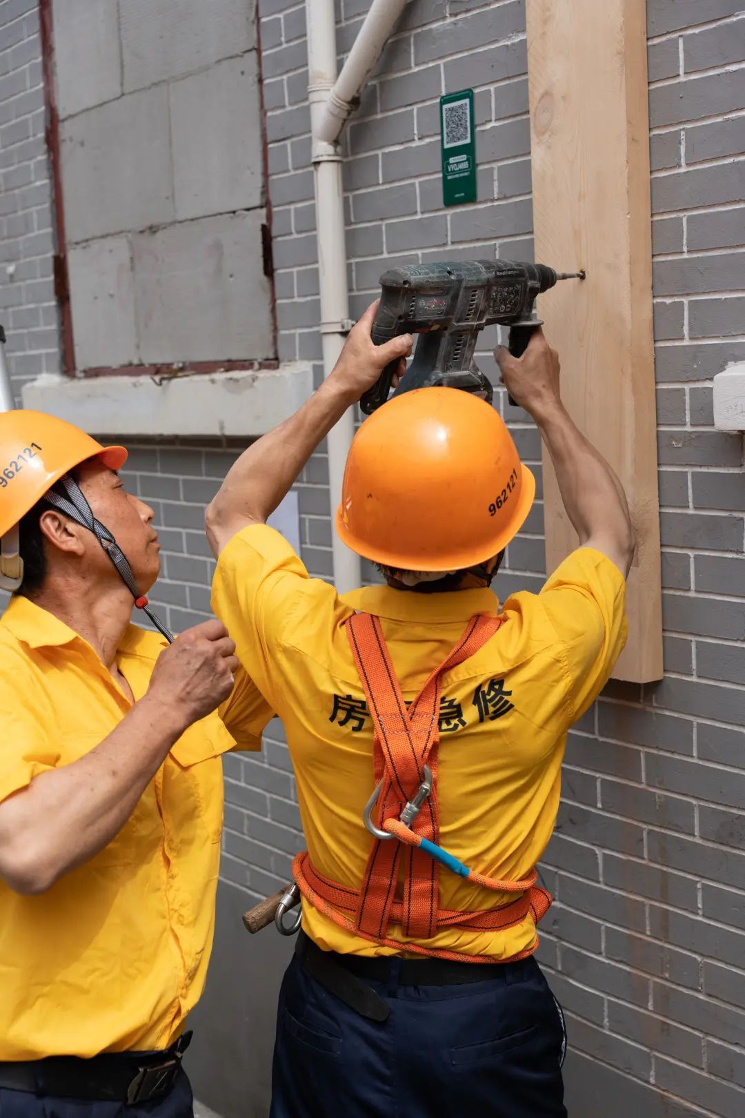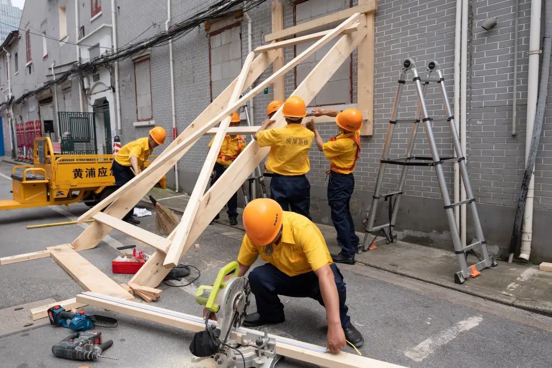 场景七:房屋排险加固组实施房屋外墙支撑加固。