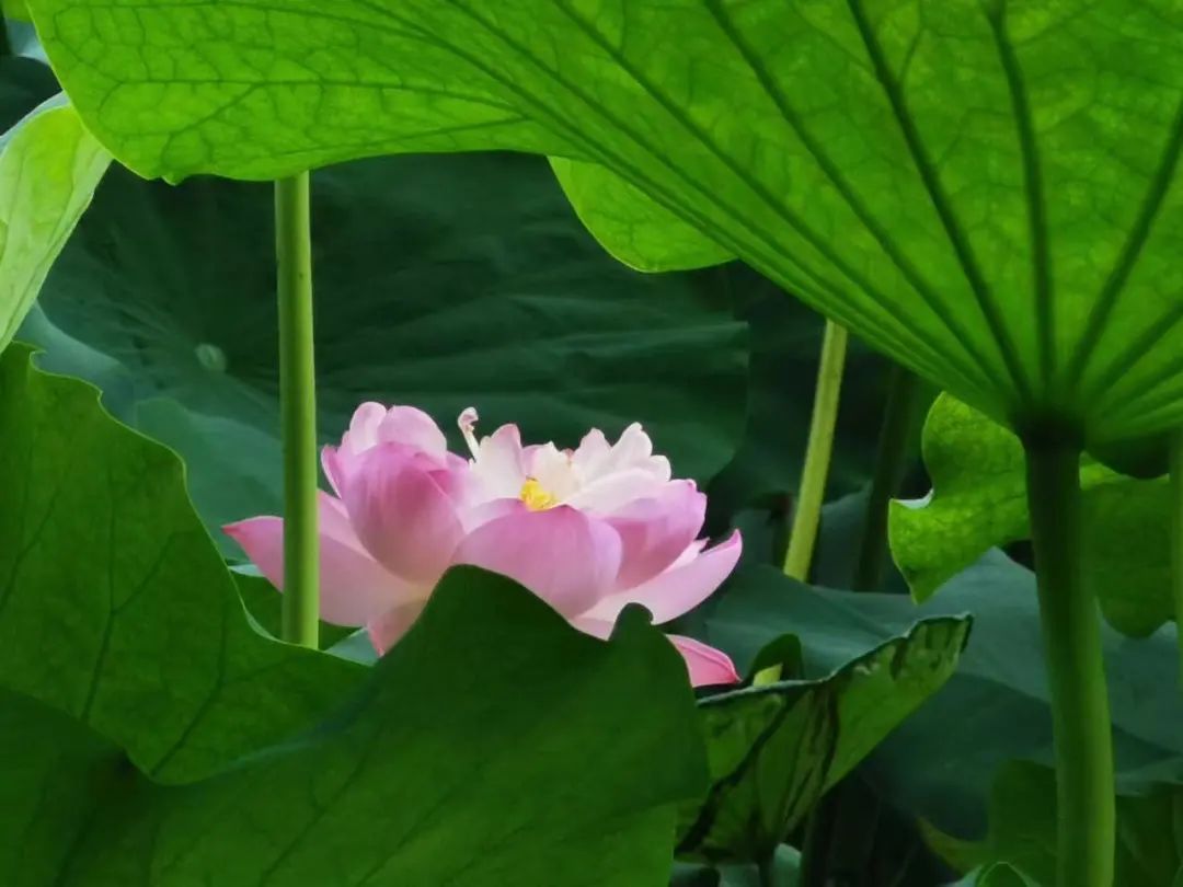 满池的清圆碧绿衬着灿花,安宁,静谧,温雅,秀巧,让人百看不厌。