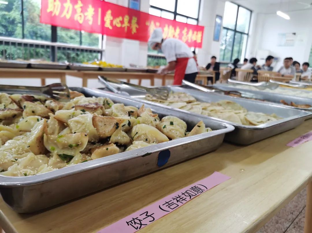 煎饺寓意“吉祥如意”,鸡蛋手抓饼寓意“把握时机”,青提寓意“金榜题名”,苹果寓意“平安喜乐”……高考前夕,松江各所高中花样上演各式祝福,就连学校食堂也使出“十八般武艺”,将祝福融进各式菜肴,为即将步入高考考场的学生们加油打气。