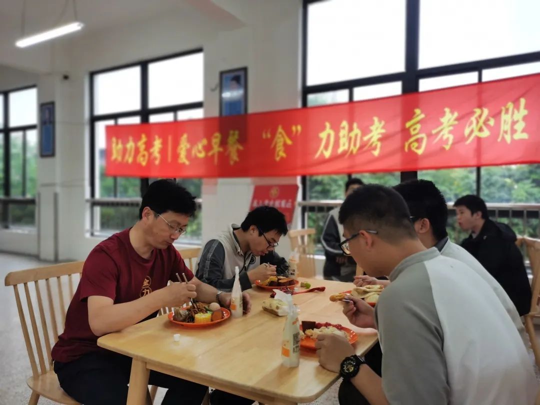 6月6日7时不到,松江四中食堂的工作人员已经将丰盛的爱心早餐端上了桌。窗边悬挂的“‘食’力助考,高考必胜”横幅把美好祝福与美味食物巧妙关联,格外显眼。