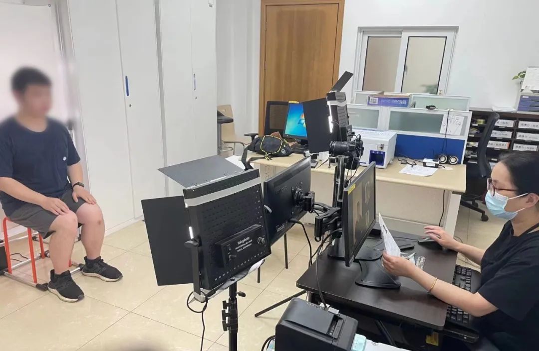 “来,看这边,头放正,身子高一点……”为了能给小顾定格最好看的瞬间,民警帮助他调整好姿势,并抓拍他微笑的瞬间。