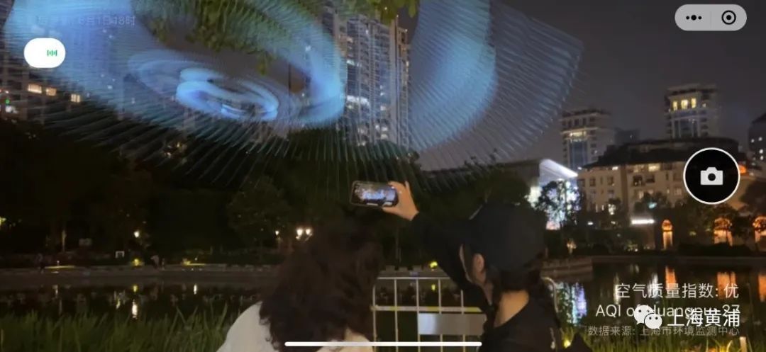 五彩霓虹装饰了城市夜空,越来越多的城市成为不夜城,光污染、资源浪费等环境问题也随之而来。许多人已经想不起上次抬头看到璀璨星空是什么时候,很多小朋友更是没有机会体验夜晚数星星的童趣。这几天,一个名为“环保星云”的AR艺术装置悄然出现在新天地太平湖上。神奇的是,这个“星云”市民并不能直接看到,它是来自“景感空间”理论的虚拟产物。
