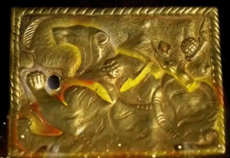后肢反转的造型取材于动物搏斗翻滚时的精彩瞬间,是现实生活场景的高度再现。该饰牌为研究战国时期度量衡制度、书法、金属铸造技术以及北方游牧民族与中原农耕民族的文化交往等提供信息,弥足珍贵。