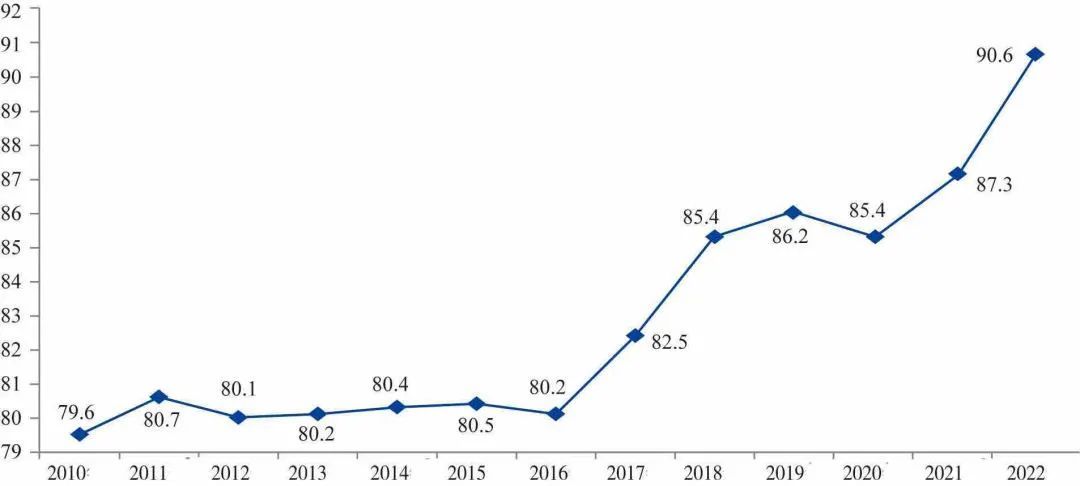 市民食品安全状况总体满意度评分为90.0分,同比提高1.1分;