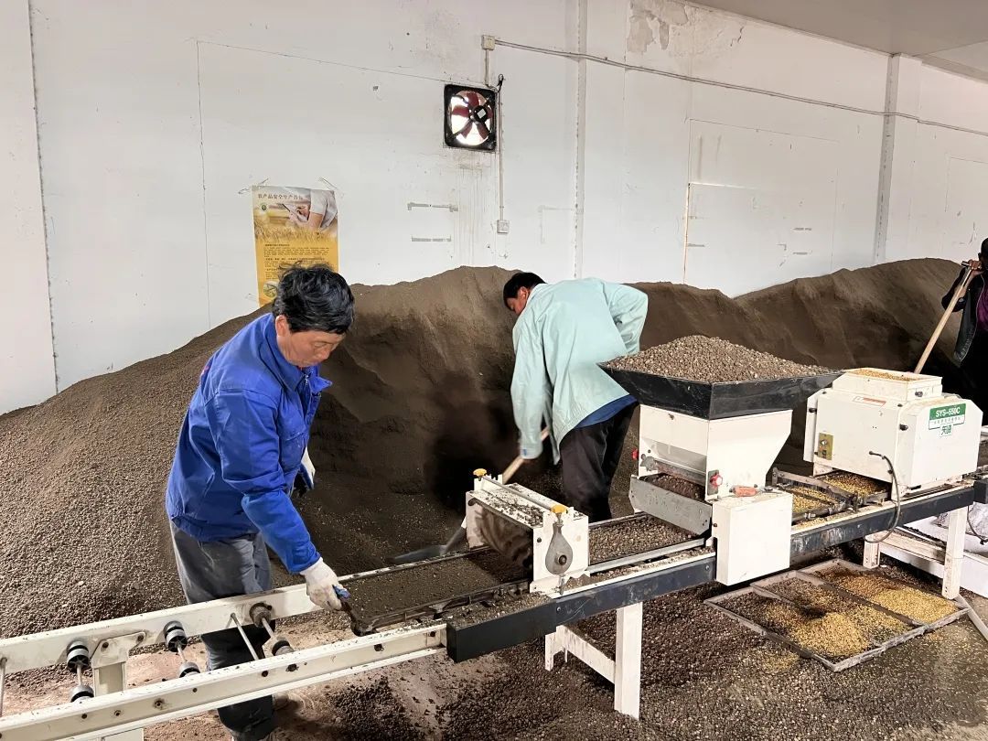 5月中旬,罗店镇各合作社的育秧基地内,工人们开始进行落谷育秧作业,利用水稻育苗播种机,从放置托盘、填土、洒水、配种、配土到出盘,15秒1个育秧盘就下了“流水线”。这些秧盘会运往田间,再经过两周左右的生长,将正式进入插秧季。