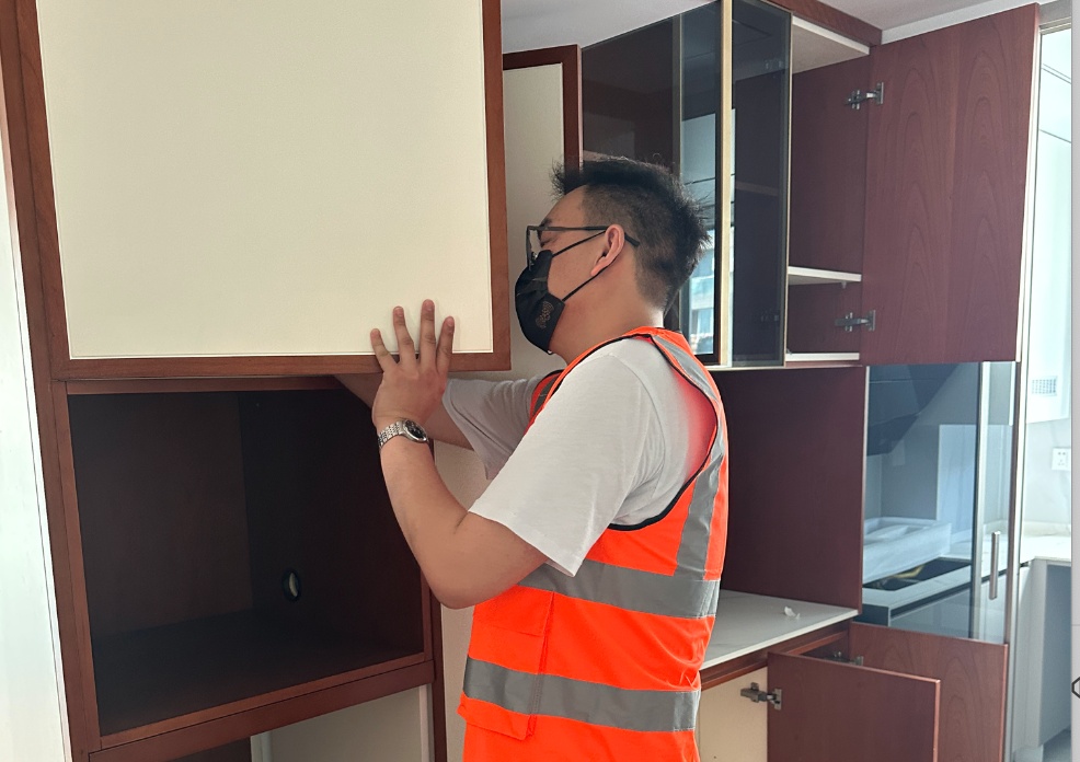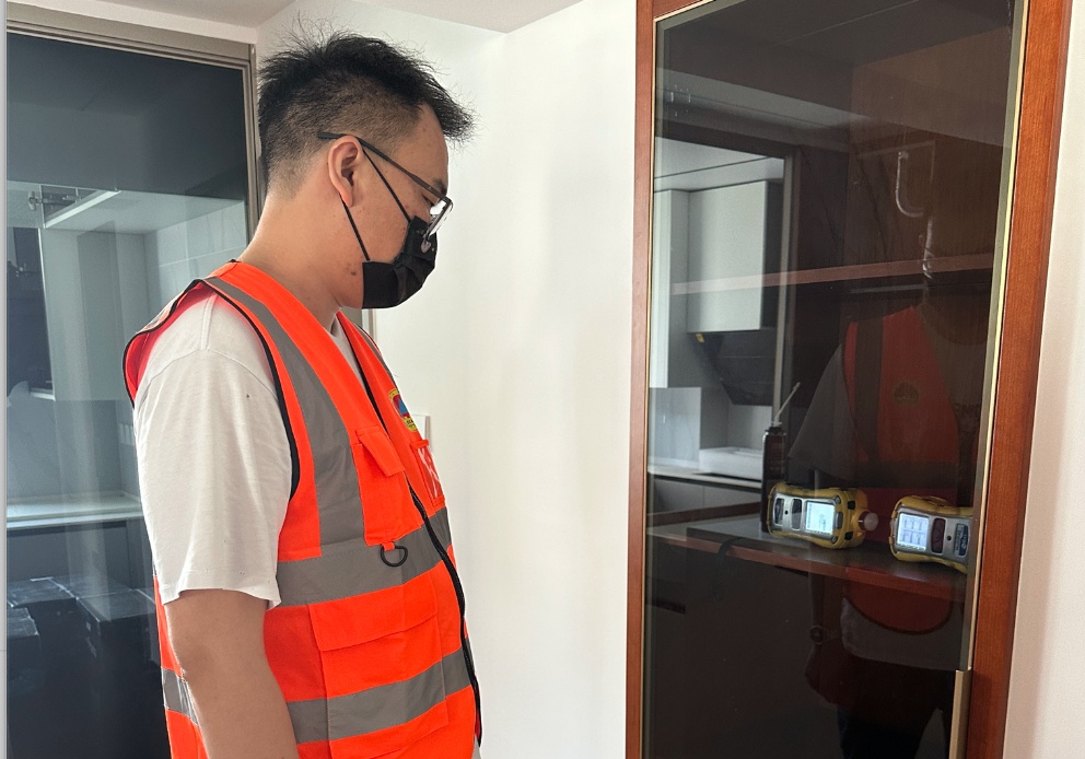 接下来的几户人家都在近期进行了新装修,大家的环保意识较强,均进行了充分的开窗通风。为了找出问题,检测人员根据经验,寻找出最容易污染超标的衣柜、橱柜等内部空间进行检测,并就超标的情况及解决方案对居民进行了指导。