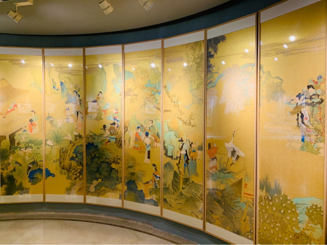 《群仙祝寿图》是中国画大家、“海上画派”杰出代表任伯年的经典巨制。朵云轩通过木版水印的非遗制作方式,将《群仙祝寿图》一比一复刻下来。据工作人员介绍,木版水印《任伯年群仙祝寿图》制作时长有8年之久,雕刻师们刻了2000多块板,水印工序更需要反复手工套印多达万余次,最终制成了高达2.06米、宽7.2米的12条通景画。