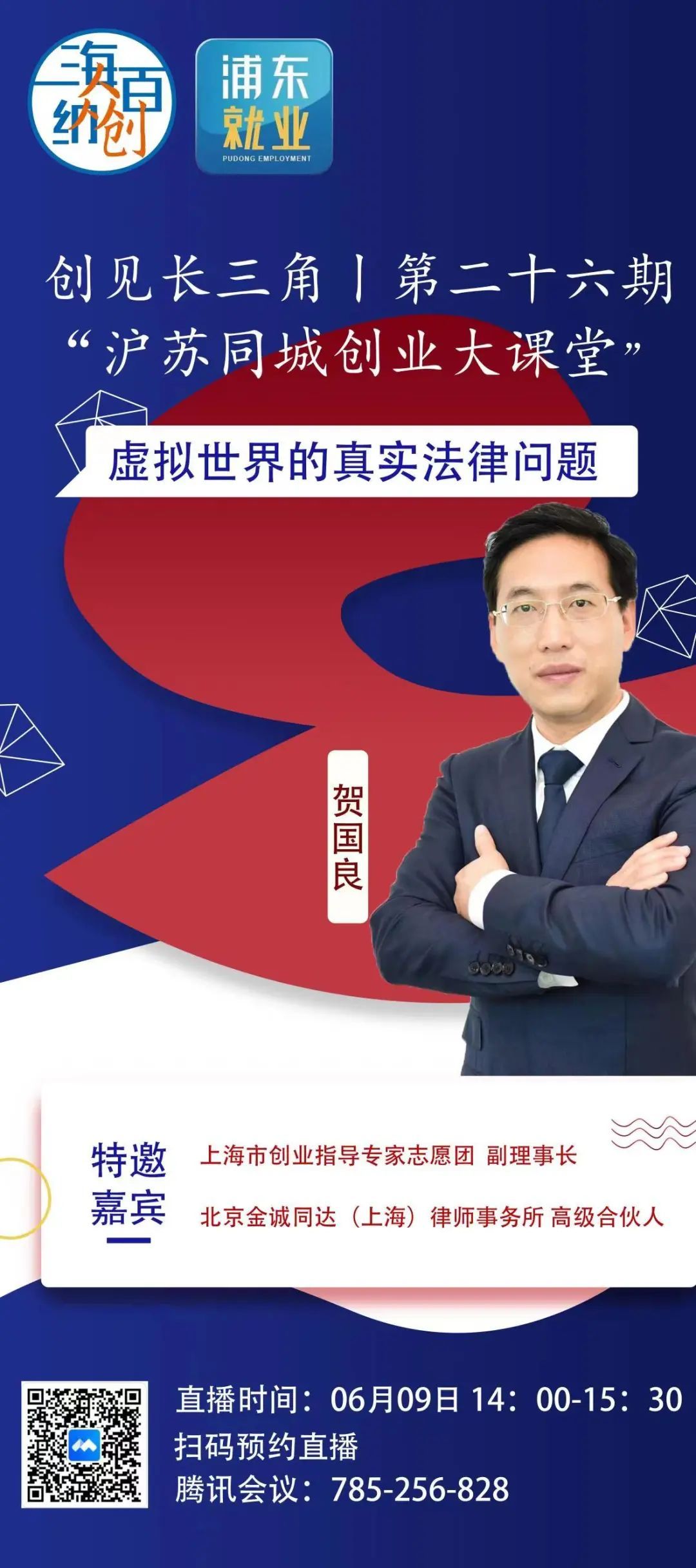 本次活动将邀请上海市创业指导专家志愿团浦东分团专家贺国良,以“虚拟世界的真实法律问题”为主题,与创业者们一起聊一聊法律那些事,使创业企业在经营过程中能合理规避法律风险。