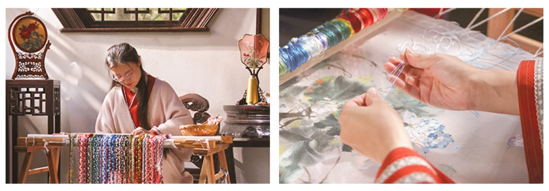 畅游不系舟、逸野堂、南厅、微音阁等亭台楼阁内,市民游客可沉浸式感受传统艺术与现代文化碰撞的激情,随时就能与洞箫、古琴、江南丝竹、徐行武术等非遗项目撞个满怀,还可体验观赏苏绣、花茶、马陆篾竹、顾家纸绣等富有江南特色的非遗项目。