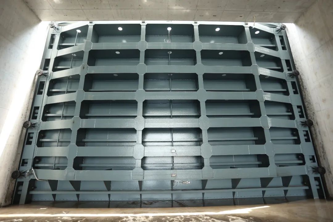 2023年5月13日,5扇水闸工作闸门顺利完成吊装。