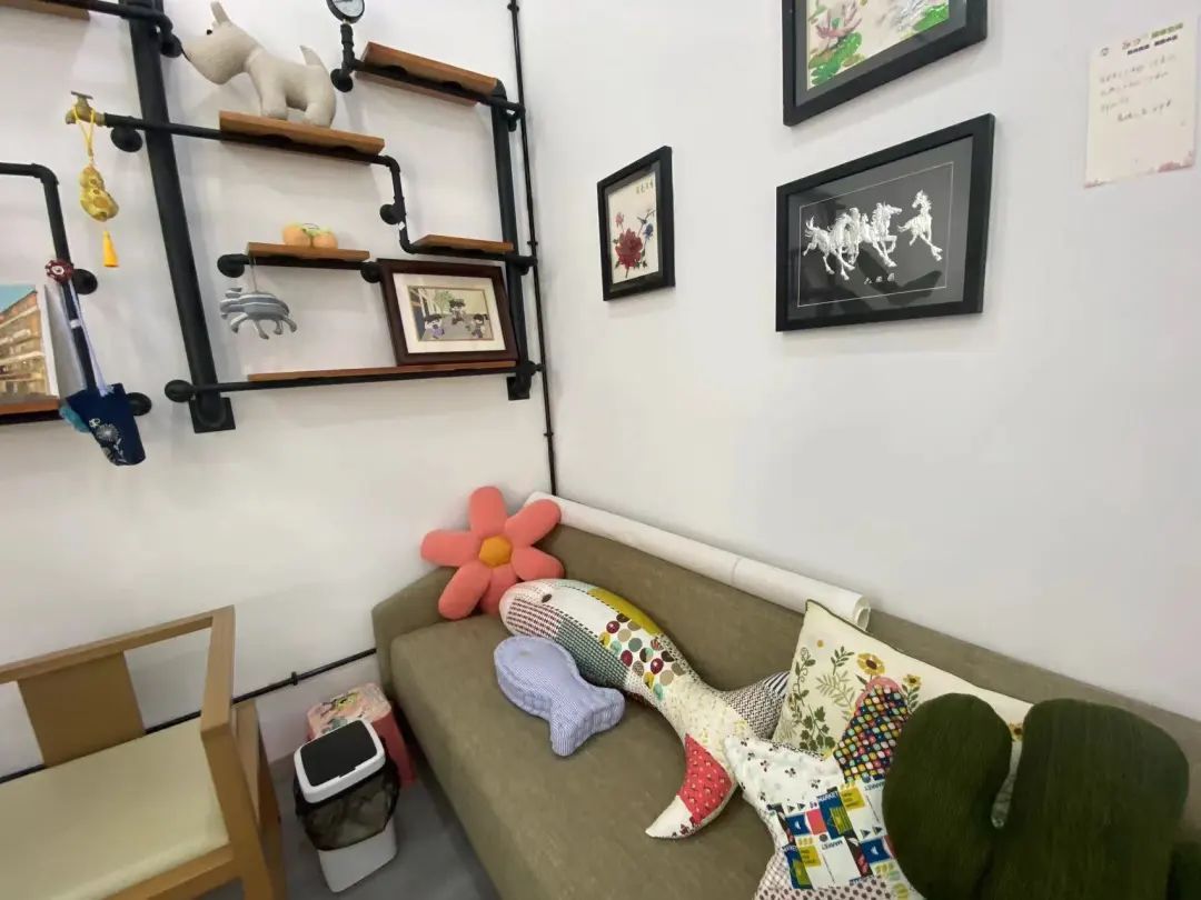 沿街拐角处的空间,被刷成惹眼的绿色门头,与毗邻的梧桐树相得益彰,这是市民游客对“乐回”的初印象。步入其中,圆桌面、长座椅、落地玻璃窗,圈起一方聊天好去处。看似寻常的空间,背后另有门道。比如,圆桌面的原料源于429个塑料瓶;长座椅由废纸回收利用后制成。令不少人流连的市民艺术角,无论是色彩绚丽的手工抱枕,或是栩栩如生的“六骏图”,其原料都取自生活中的废布、易拉罐等可回收物。