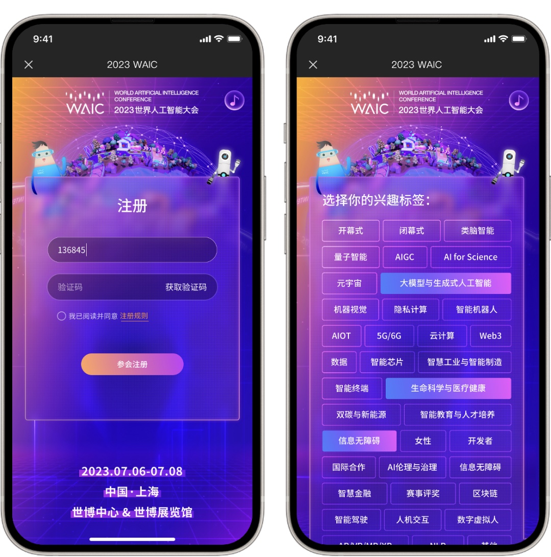 选择兴趣标签,完成参会注册