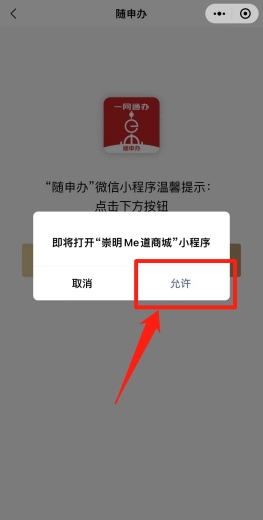 依次点击“立即前往”“允许”,即可进入“崇明米道”微信小程序。
