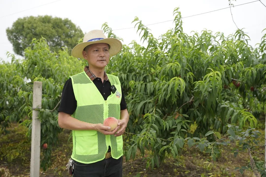 82号大果园创始人邬金山介绍:“我们果园种植面积207.4亩,主要种植了桃和梨,桃大概60亩,梨大概70多亩,然后还种植有杨梅、猕猴桃、野果“八月炸”等水果。目前,早桃已经成熟,其外表白里透红,口感清甜可口,单个重量在7两到8两左右,预计第一批会有1万多斤上市。”