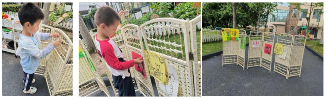 在此之前,幼儿园提前开设了一个园内画展,让孩子们尝试着自己来布展,当一回小小策展人。