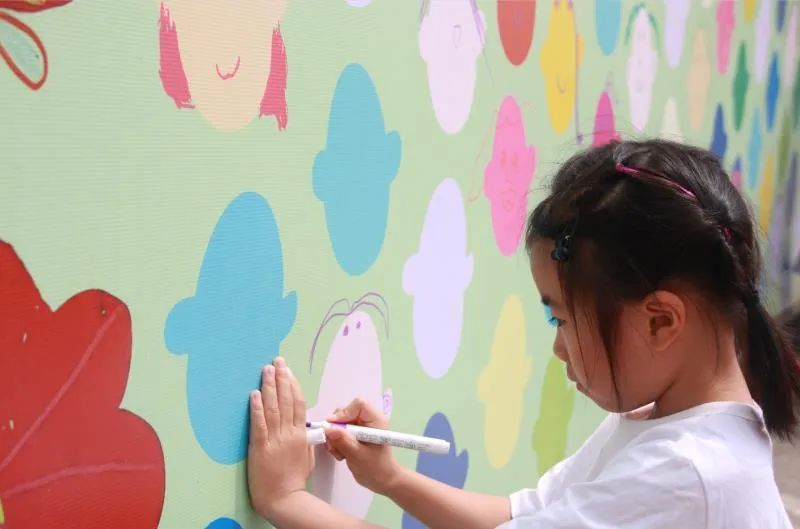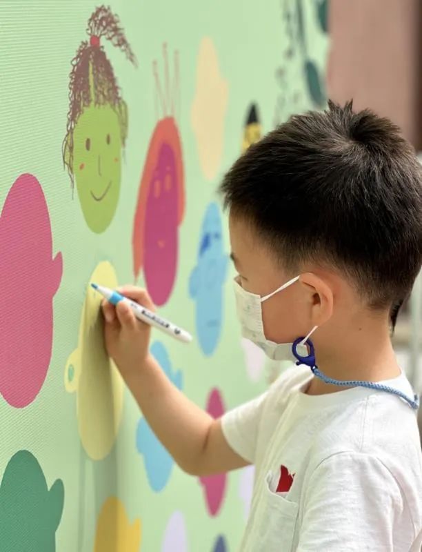 展览当天,这面特别的签到墙诞生了,孩子们用“自画像”的形式来进行签到。