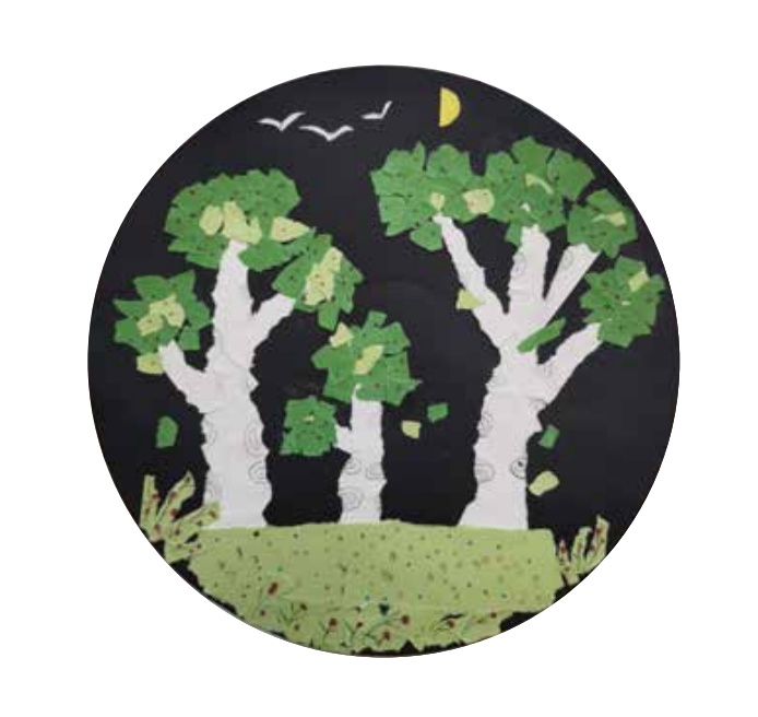 朱俊雅小朋友用拼贴画的方式呈现出了一幅叫做《月夜》的作品。