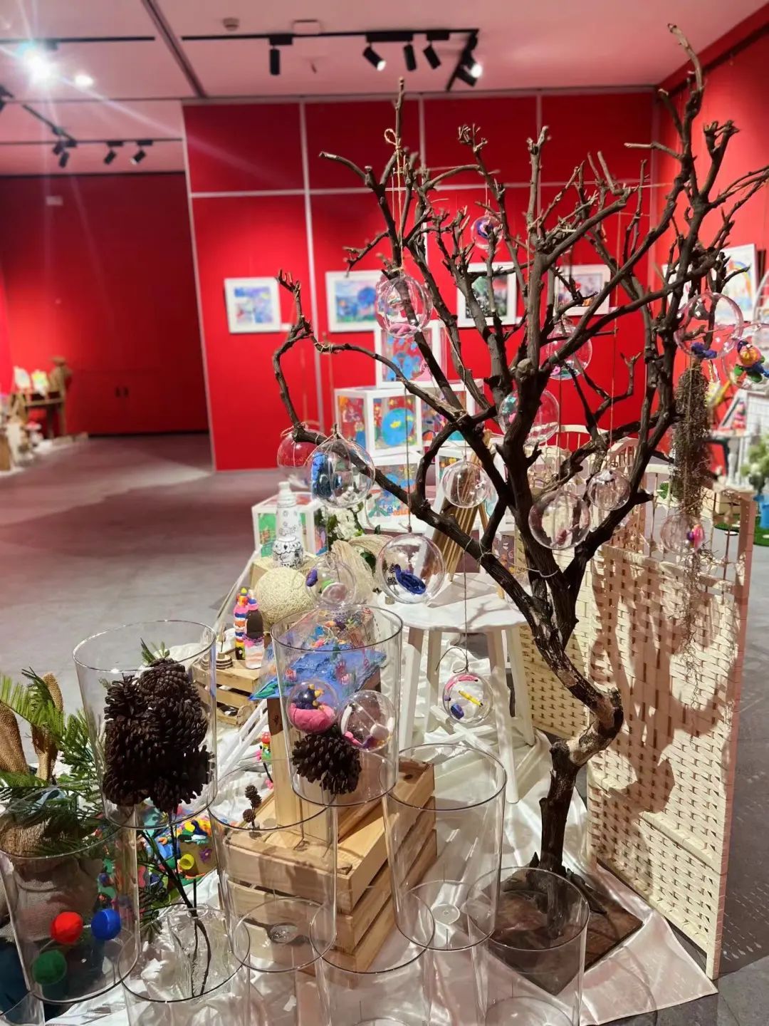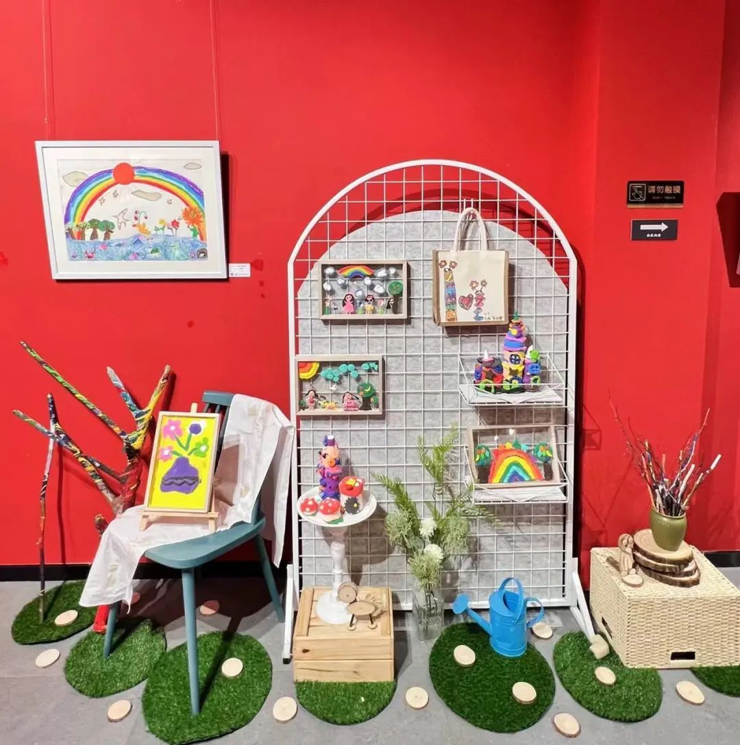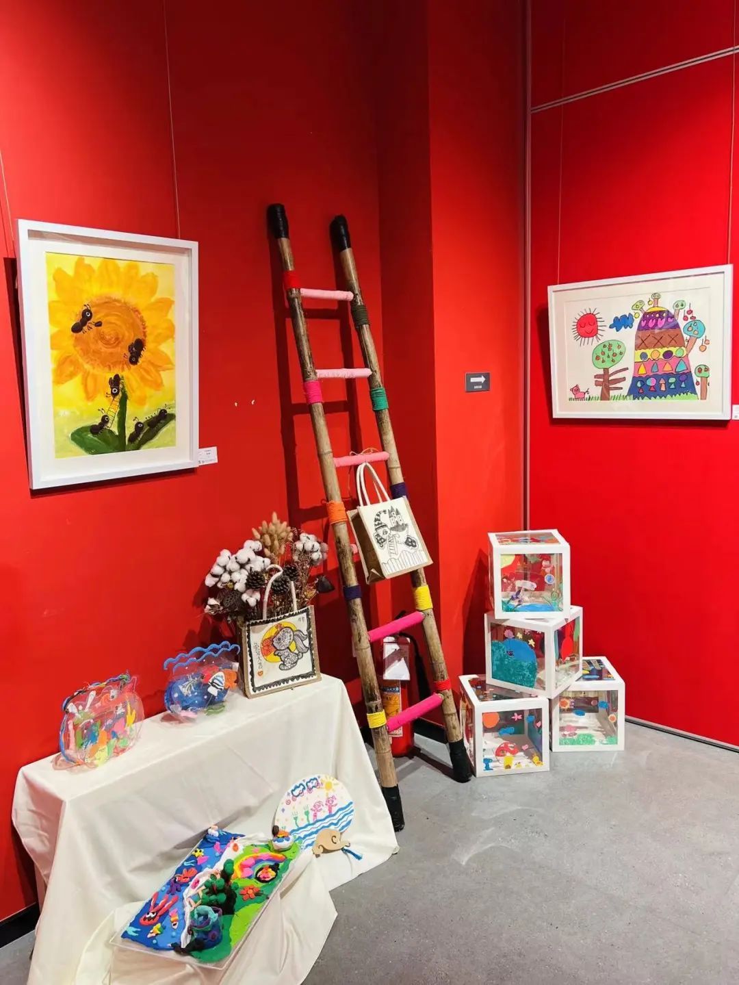 展览中,除了绘画作品,还可以看到孩子们颇具创意的彩泥、陶艺、手绘帆布袋等各类展品。