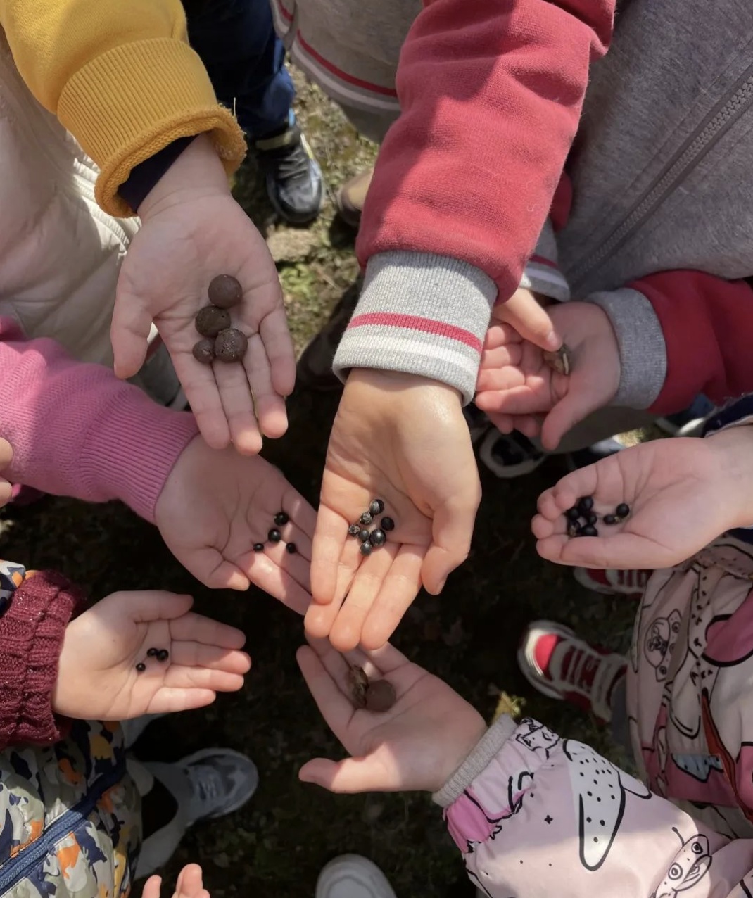 活动后,孩子们还化身“种子猎人”,在幼儿园里搜寻到了各类果实、种子、花朵和叶子,将自己喜欢的植物做成自然笔记或用画笔记录下植物当下的美好。