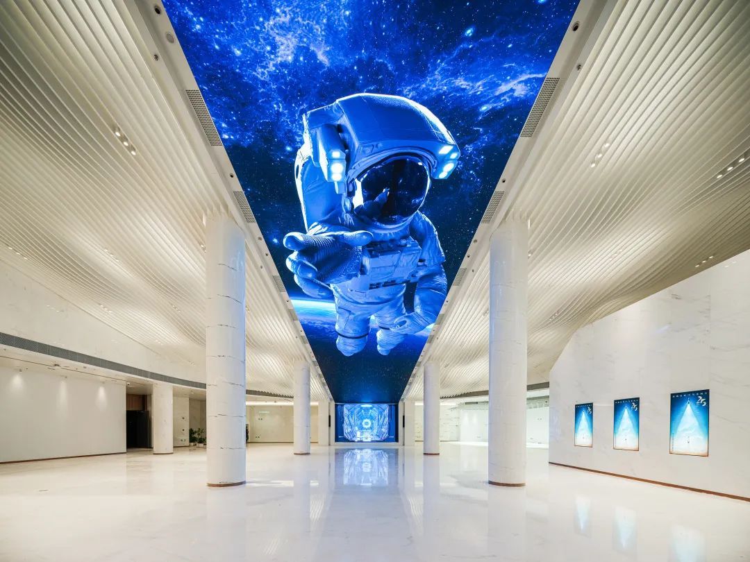 从影城大门踏入,影城大堂处拥有裸眼3D效果的“0号厅”成为不少市民的首要打卡点。伫立在巨型高定制LED天幕周围,是“东方鱼肚白”色的大理石立柱,“每根都不一样”。日出东方鱼肚白,这一中国传统颜色间于白色和淡粉色、淡青色之间,给人以素净、高雅之感。