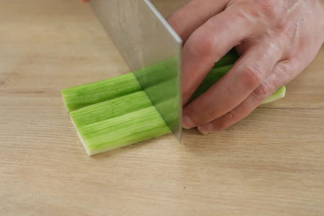 1.丝瓜去皮去囊后切条待用,白玉菇、蟹味菇去根洗净待用。