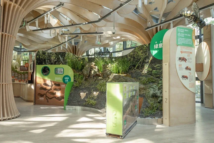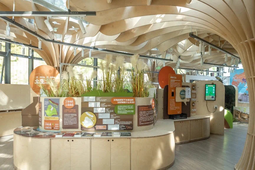 生态展示馆是上海城市公园探讨城市生态的首创案例,分为土生土长、绿意盎然、泽被万物、不速之客四个板块。