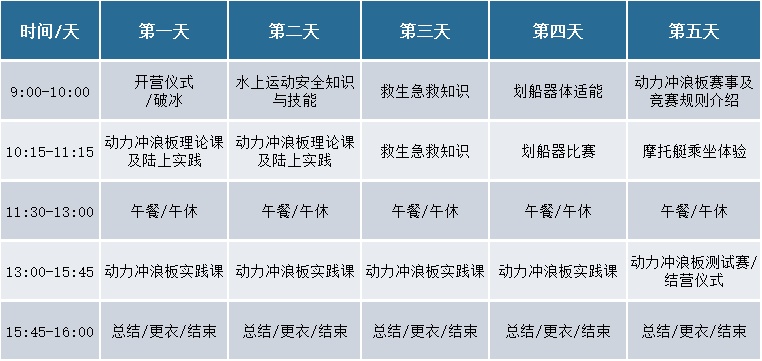 了解水上运动知识、学习如何驾驶动力冲浪板、培养水上项目的兴趣爱好……无论是初入门的新手小白,还是经验颇丰的“种子”选手,拥有一位专业教练的引导与保护都至关重要,经验丰富的教练能让大家更快捷、安全地掌握运动技能哦!当夏令营活动结营后,还将会选拔优秀学员向市级专业运动队进行输送,开展后备梯队培养。