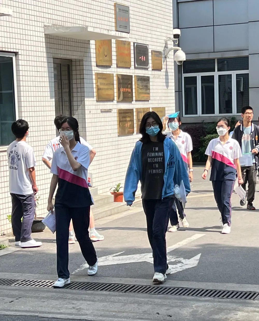 △6月9日,完成外语听说测试的虹口考生走出考场。