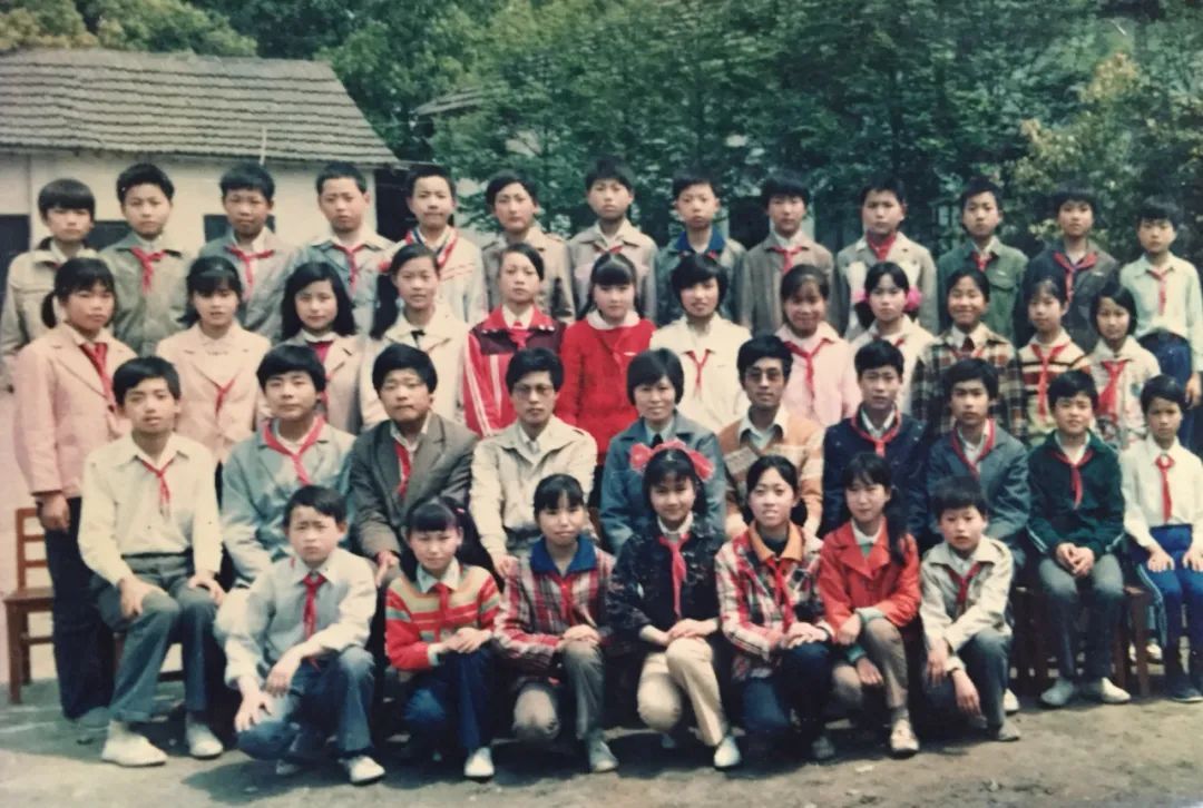 我今年76岁,1968年成为钱门中学的老师,那时候学校未曾组织拍合照,这张毕业照是我特地邀请他人拍摄的,也是我和学生们的第一张毕业照。照片上,大家的衣着都很简朴,女生们绽放着微笑,男生们稍显拘谨,这是属于80年代毕业照的“端庄”。