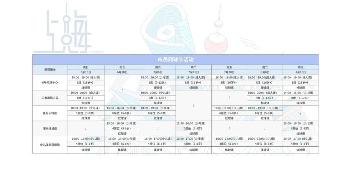开课地点:徐汇区龙兰路云锦天地T2-311(星光网球俱乐部)