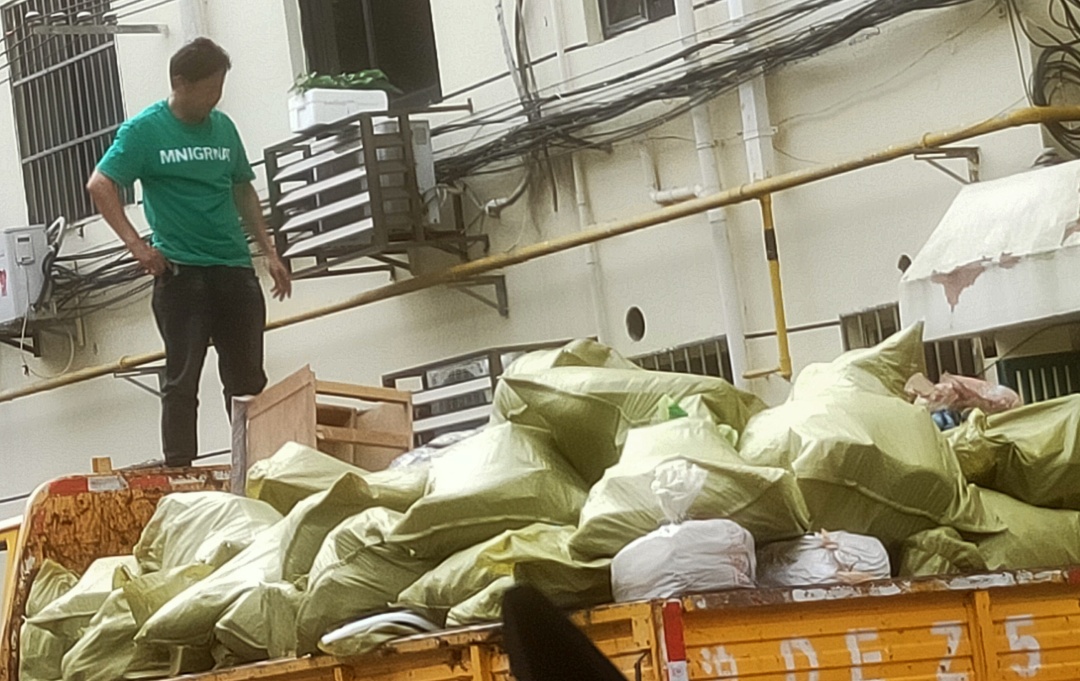 6月1日至6月5日,整整五天的时间,各方顶着高温和恶臭对老人房屋内的垃圾进行清运。共装走1300袋、15卡车、30多吨的垃圾。