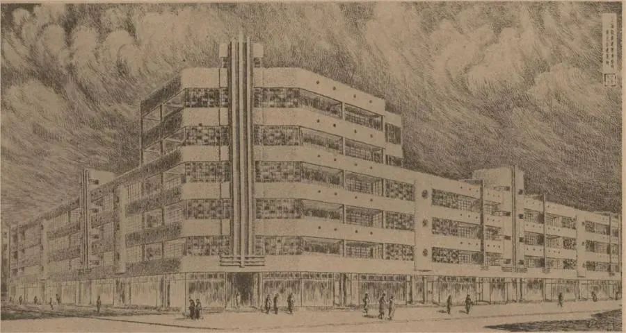 淮海大楼是20世纪30年代沪上最高级的公寓楼之一。《中国建筑》在1935年9月出版的第三卷第四期中,对其做了重点报道,全部建筑雄壮伟丽,内部布置更能运用灵思巧夺天工,虽一椅一桌,亦均预留地位。居住者咸称便利。虽际此不景气至候,仍能全部出租,几无虚日,是故建筑师有劳与投资者岂浅鲜哉!