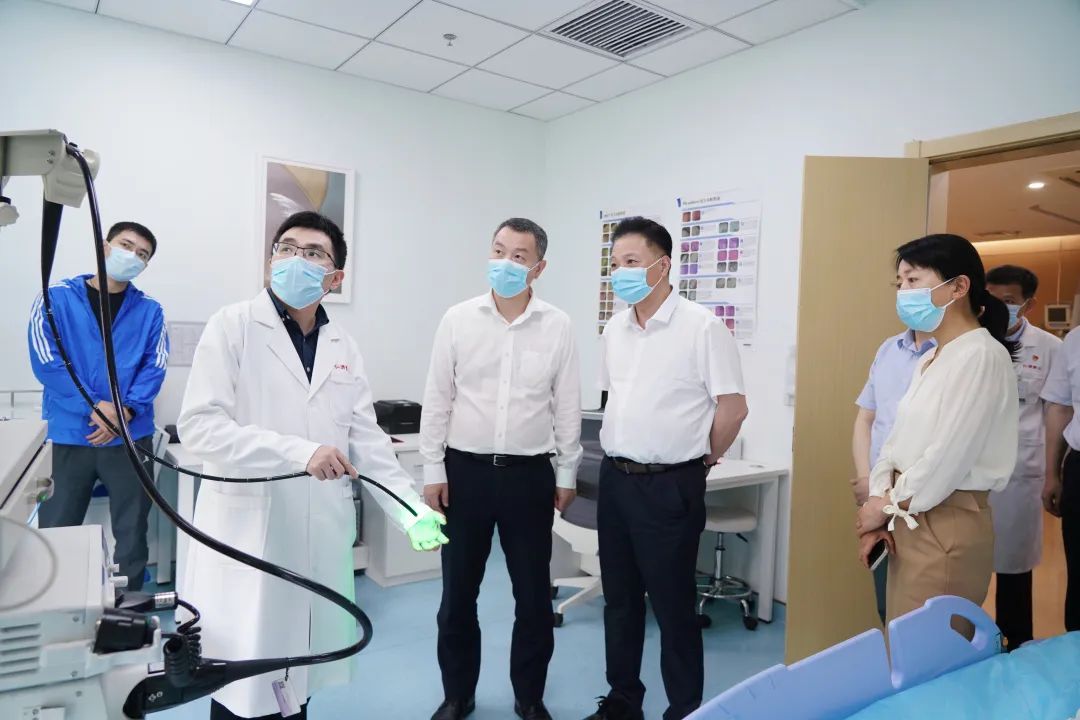 陈杰一行先后察看了解了专家门诊坐诊情况、内窥镜中心,俯瞰医院二期工程建设情况,并围绕医院医疗队伍配置、临床救治能力、医疗科研建设等情况提出具体要求部署。陈杰强调,要积极做好与市级医疗机构对接,以点带面,带动医疗服务能级整体提升。要大力发展人才队伍培育,提高医疗救治能力水平,以规范化、专业化治理措施更好满足百姓就医需求。要结合南大地区整体规划做好医院二期工程建设,更好打造宝山西南地区区域性医疗中心。