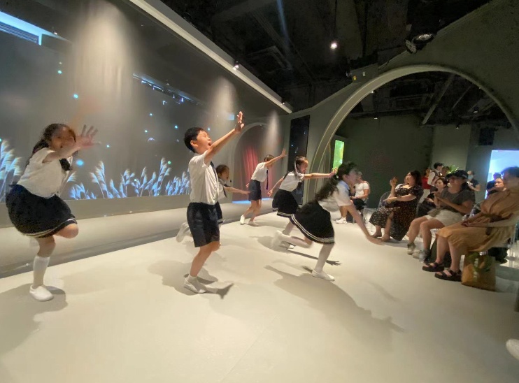 酒店二楼的沉浸式星光剧场营造的互动场景更是如梦如幻。当天,音乐剧《寻找声音的耳朵》精华版在此预演,小演员们用清澈纯真的歌声将观众带入剧本之中,以惟妙惟肖的表演为观众带来超凡的艺术体验,赢得了阵阵掌声。舞台上,华美的灯光和穹窿灯带如星光闪耀,带来一场别开生面的立体化沉浸式感官体验。