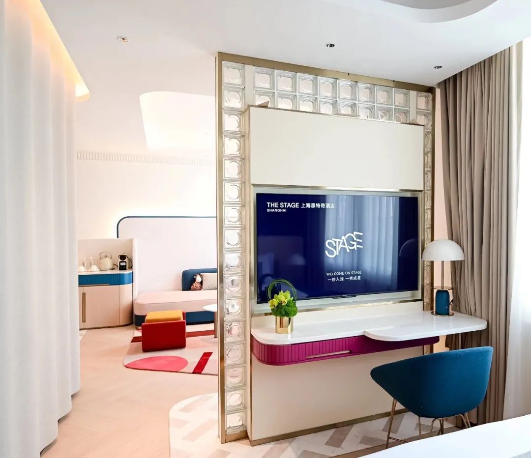 据悉,思特奇是松江首家以“影视+人文生活方式”为定位的沉浸式高端精品酒店。酒店以“武康大楼”为主要设计灵感,以文艺复兴时期的“舞台”为设计意象,含有大量蒙太奇艺术风格。思特奇酒店大堂内,明亮的色彩搭配、前卫的升降显示屏、精妙的帷幕造型让人眼前一亮。据酒店工作人员介绍,酒店主要通过空间、材质、色彩等的运用,让整体更显电影和艺术质感,带领宾客进入一场“时空之旅”。