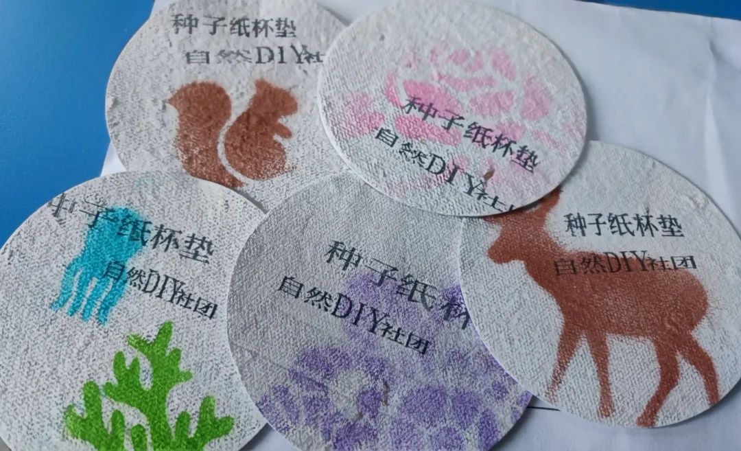 陈雅珺老师告诉记者,鸿园出品的蔬果会分给同学们食用,有些会制作成手工制品,“把考卷撕掉制作成再生纸,再把种子撒进去制作成种子纸杯垫。”她给记者展示了五颜六色的种子纸杯垫,用完之后泡在水中可以发芽。